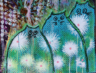 1. Создаем фон без бумаги – только краски, трафареты, спреи, штампы и т.д. В общем, используем разные арт-штучки. Покажите ваш фон до приклеивания картинки. Очень интересно посмотреть будет.